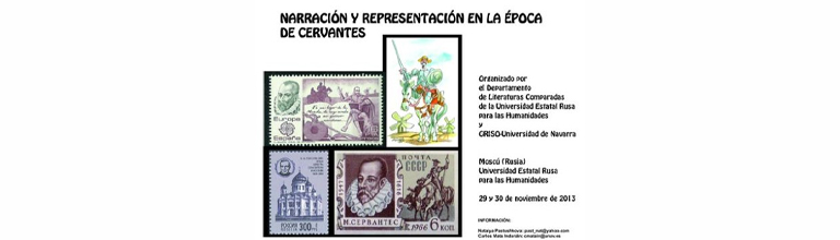 Se encuentra disponible el programa del Congreso Internacional «Narración y representación en la época de Cervantes», que se va a celebrar en Moscú (Rusia), los días 29 y 30 de noviembre de 2013, coorganizado por el Instituto de Filología e Historia de la Universidad Estatal Rusa para las Humanidades (RGGU) y el Grupo de Investigación Siglo de Oro (GRISO) de la Universidad de Navarra.